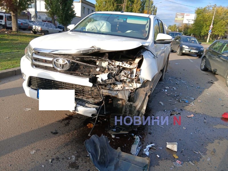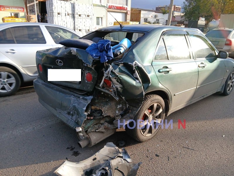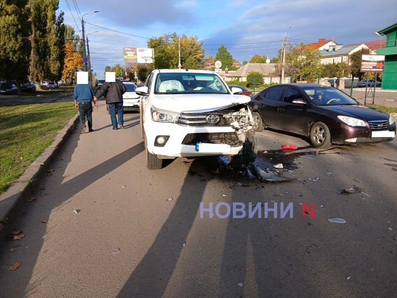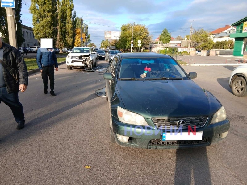 Утром 20 октября на ул.Кузнечной в Николаеве столкнулись автомобили Lexus и Toyota Hiluх: из-за аварии образовался огромный автомобильный затор.