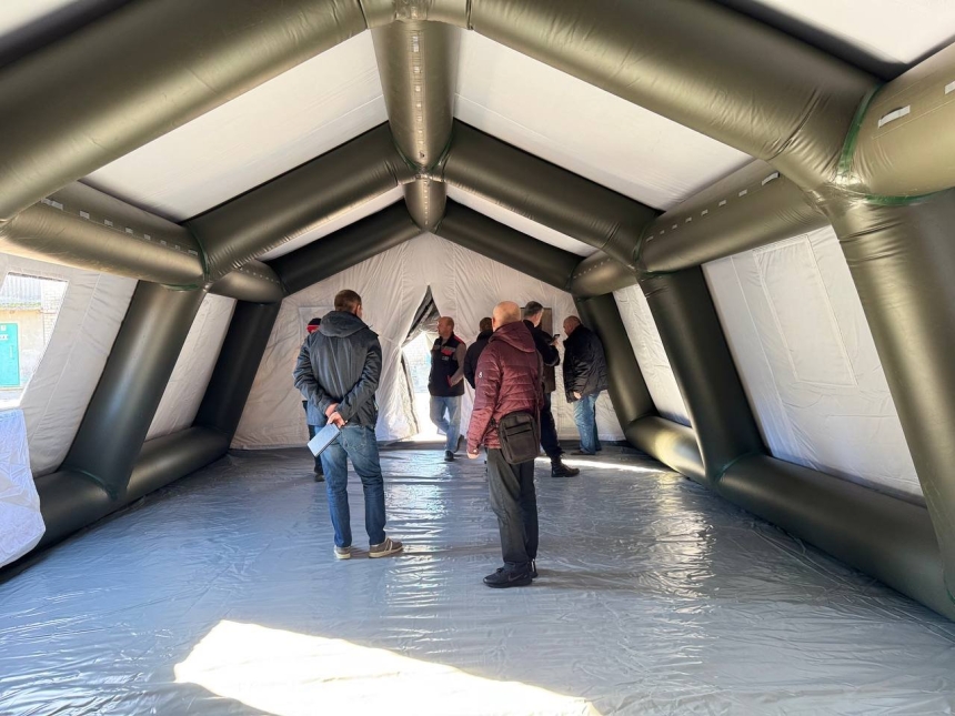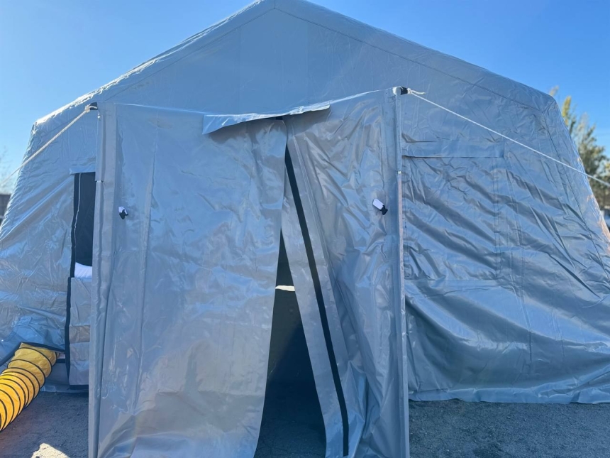 В Николаеве коммунальщиков учили разворачивать мобильный пункт обогрева.