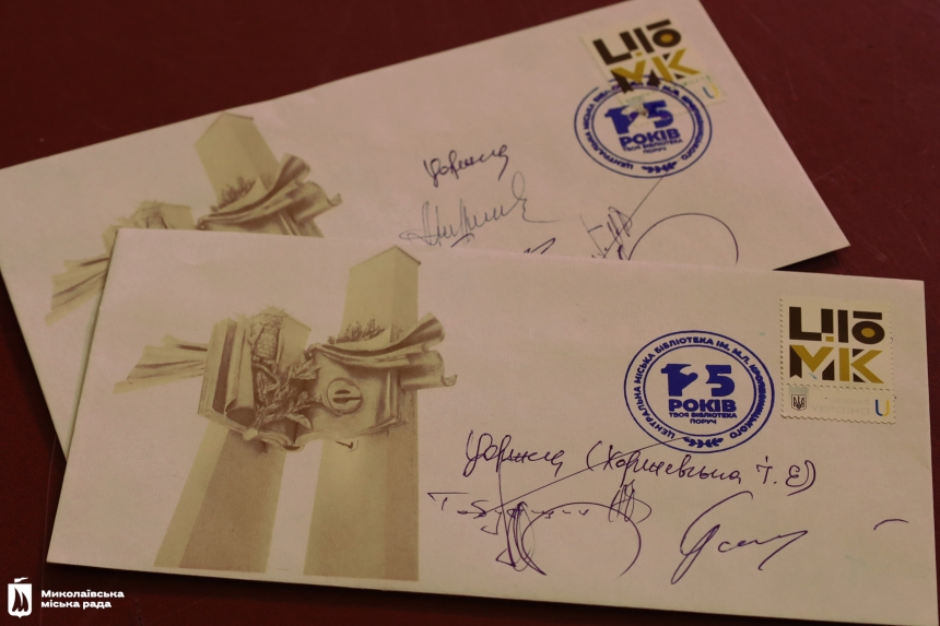 В этот праздничный вечер зал Николаевского академического драматического театра собрал работников всех филиалов библиотеки и ее друзей. Начались торжества по погашению марки, посвященной заведению. На марке изображена обновленная к юбилею эмблема библиотеки.