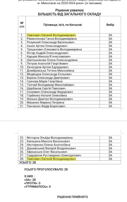 «Мы взяли произвольно одну сессию от 30 января. В файле с результатами голосования ясно видно: 28 депутатов «за» — ровно кворум. Но среди них дважды указан один и тот же депутат - Павлович Евгений. Кто-то из работников КП "Городской информационно-вычислительный центр" под руководством директора Богаченко при переносе результатов голосования просто дублирует депутата, чтобы «собрать» нужное количество голосов.