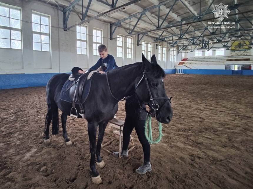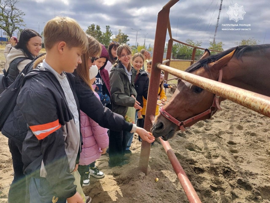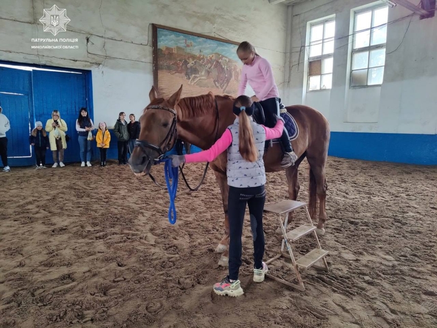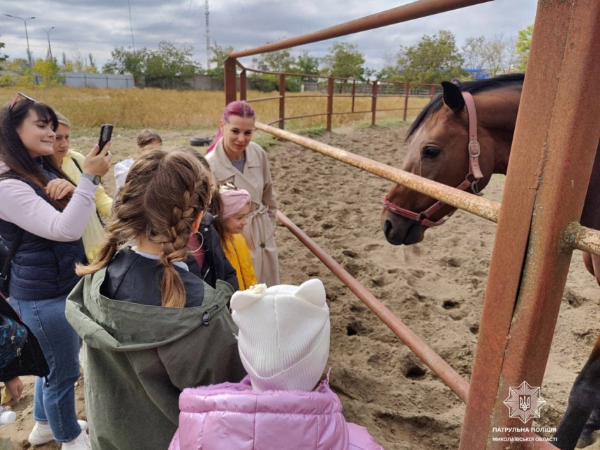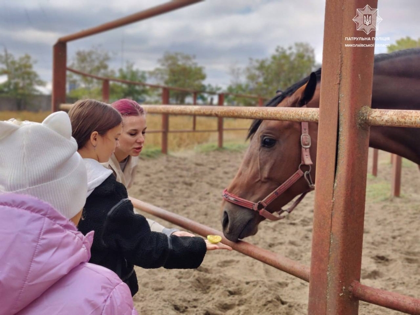 Патрульная полиция Николаевской области организовала для детей и жен военнослужащих особенную встречу — сеанс конной терапии.