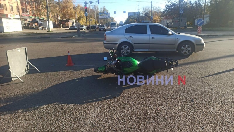 Утром в четверг, 30 октября, на перекрестке пр. Богоявленского и ул. Космонавтов в Николаеве столкнулись мотоцикл и ВАЗ 2106.