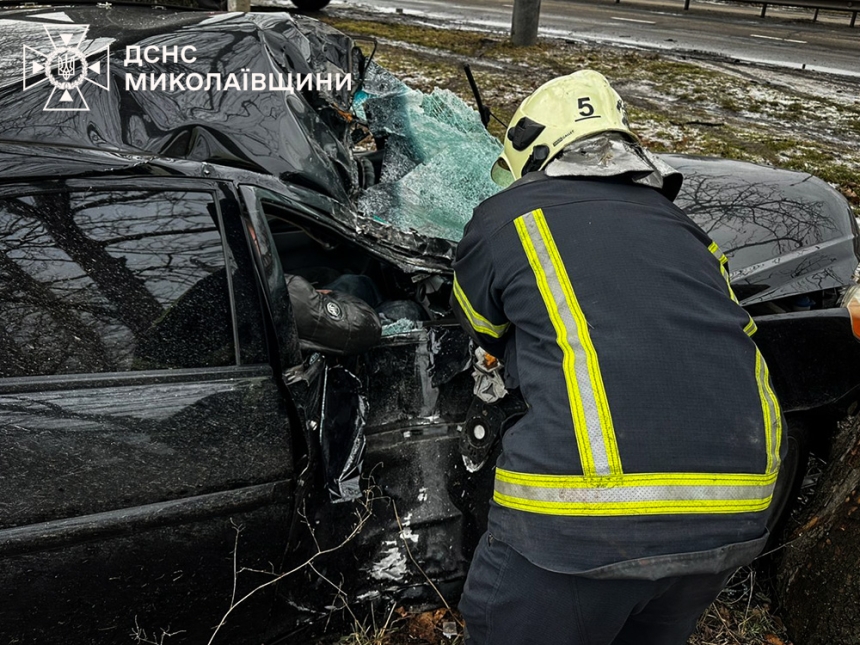 В Николаеве Hyundai слетел с дороги и врезался в дерево: пассажирку из авто вырезали спасатели (фото)