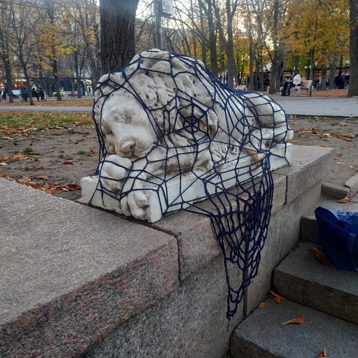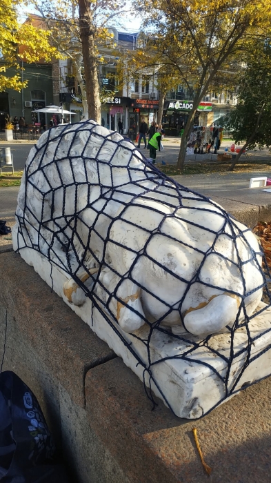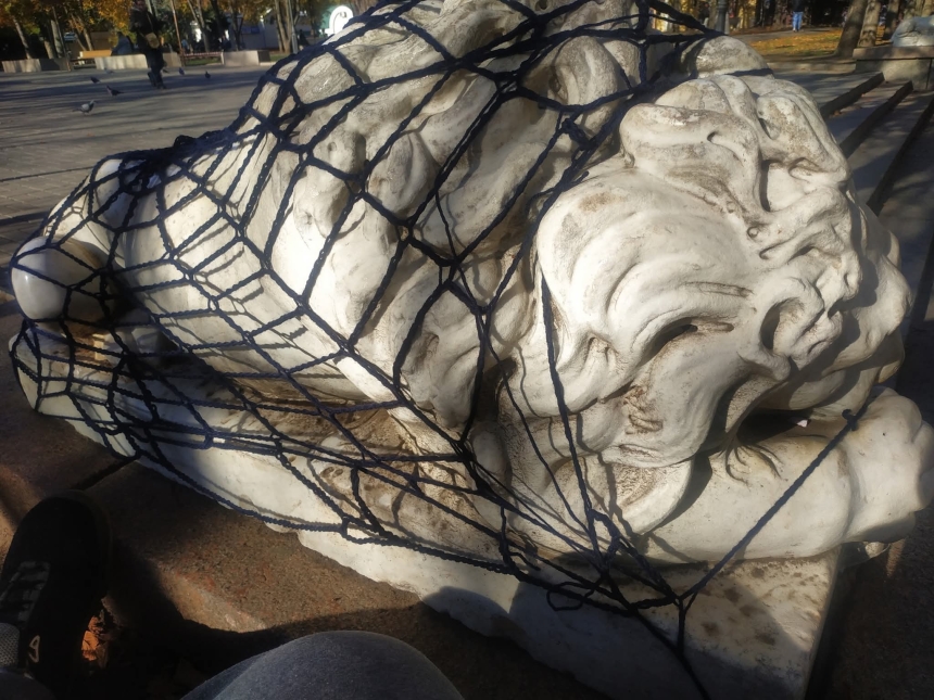 В Николаеве к празднику Хэллоуин в Каштановом сквере, который находится на ул. Соборной, украсили «аркасовских» львов.