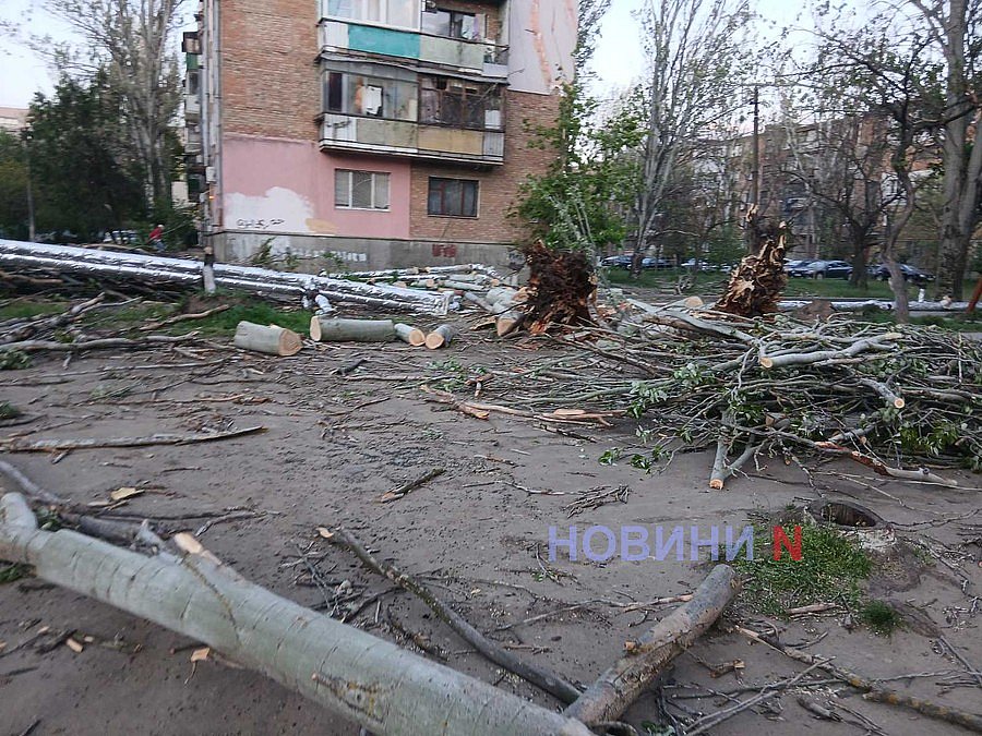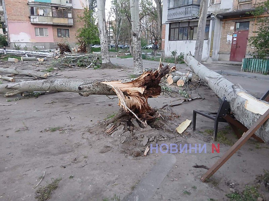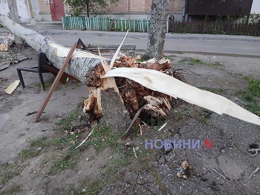 В Николаеве на одной улице ветер повалил сразу четыре дерева: повреждены машины, скамейки, балконы