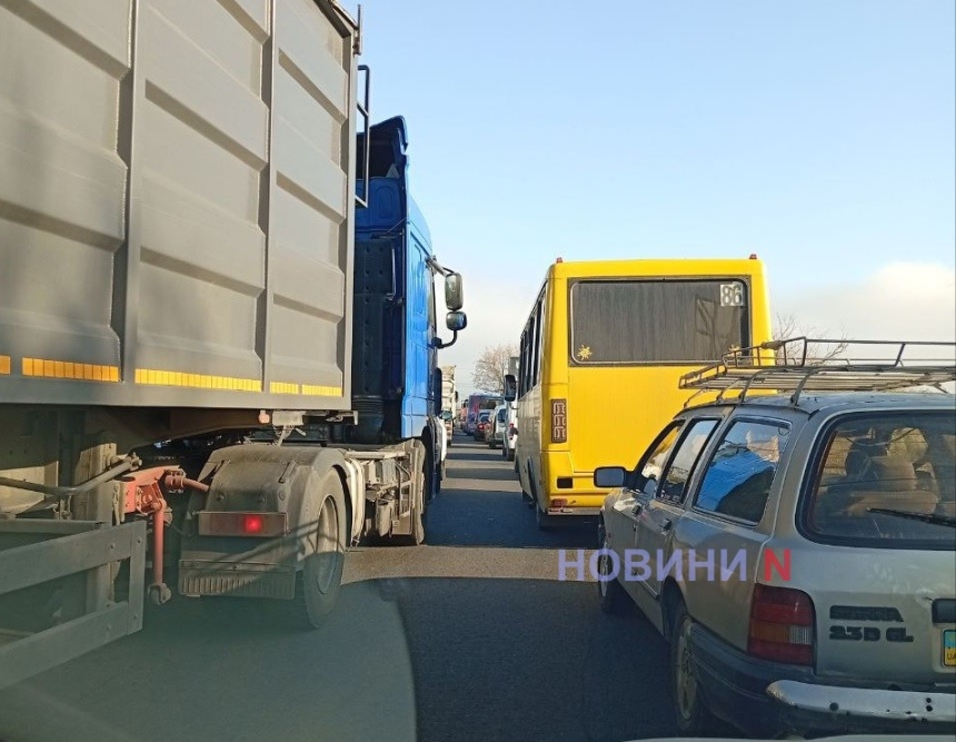 В Николаеве - огромная пробка перед Варваровским мостом (фото)