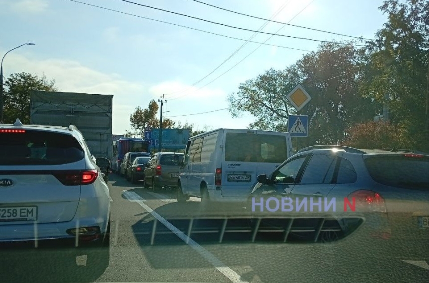 Утром 21 октября в Николаеве образовалась огромная пробка по направлению центра города перед Южнобугским (Варваровским) мостом.