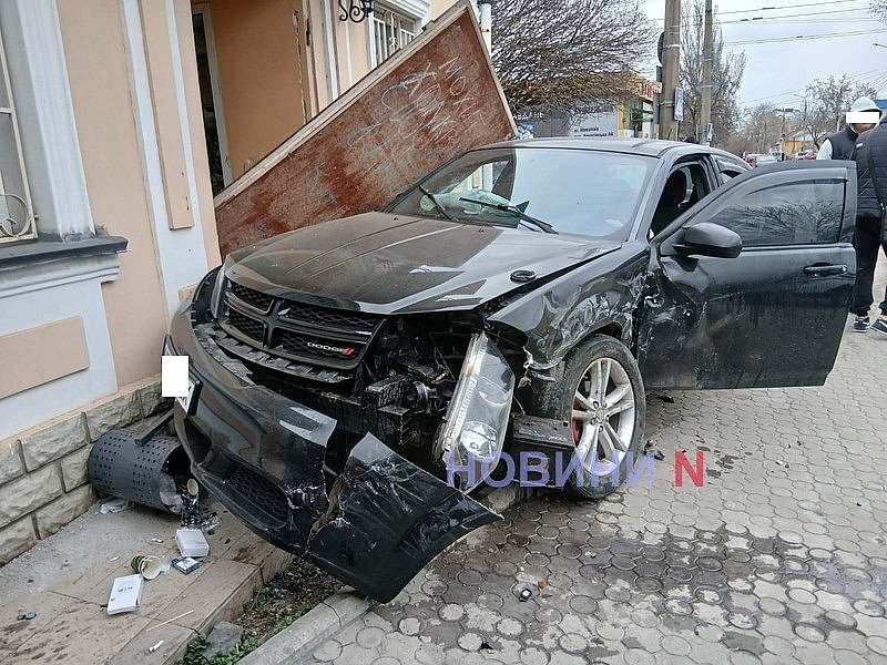 В субботу, 21 марта, на перекрестке ул. Аркасовской (Пушкинской) и Панаса Саксаганского (Дунаева) в Николаеве Dodge после столкновения с Honda Accord врезался в магазин.
