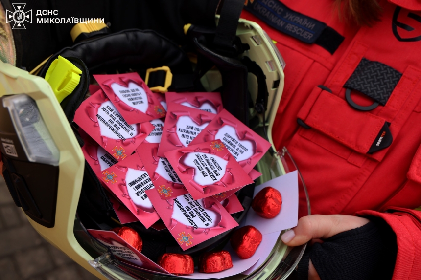Накануне Дня святого Валентина на главной улице Николаева стало немного теплее. Сотрудники Главное управление ГСЧС Украины в Николаевской области провели необычную акцию для горожан.