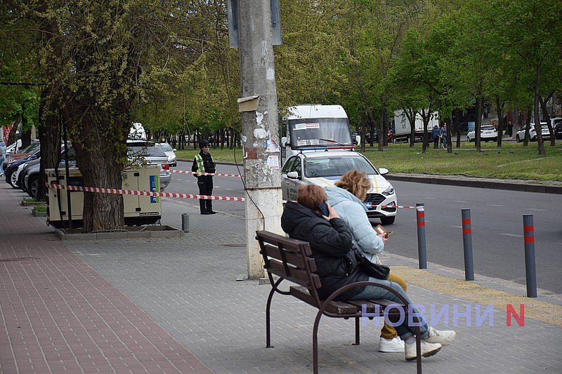 Днем во вторник, 28 апреля, в полицию поступил сигнал от граждан о том, что на тротуаре по проспекту Центральному в Николаеве, рядом с остановкой «улица Садовая», находится подозрительный предмет.