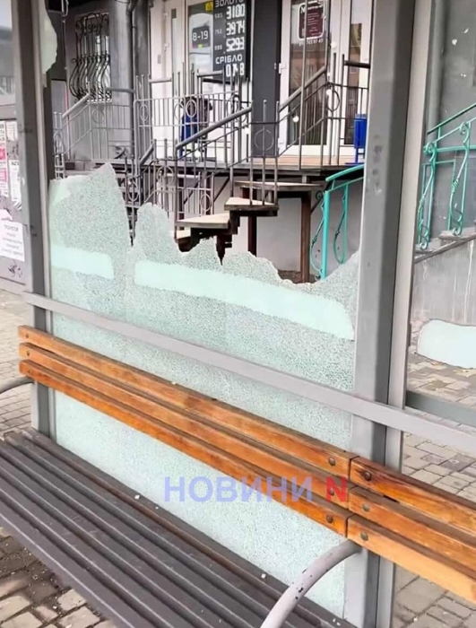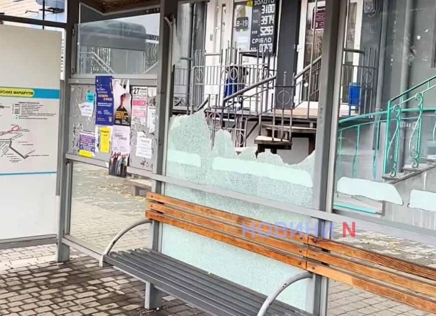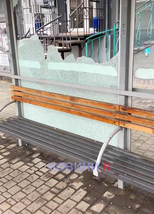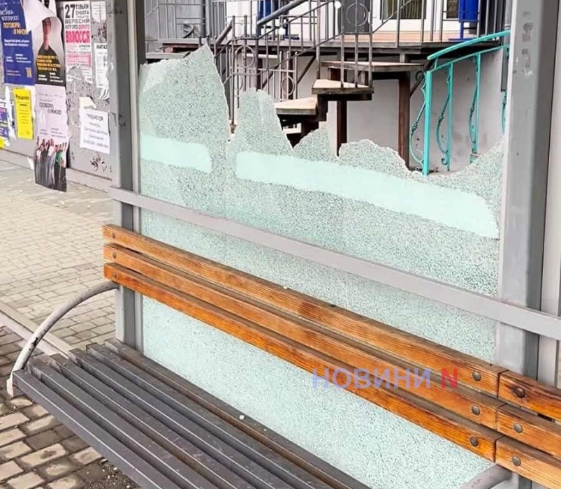 Стеклянную остановку общественного транспорта «ул.Рюмина» в Николаеве разбили неизвестные.