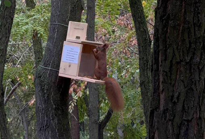 В николаевском парке Лески завелись белки: жители установили кормушку
