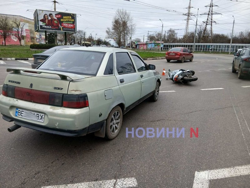 Утром во вторник, 23 декабря, на кольце возле автовокзала в Николаеве автомобиль ВАЗ-2110 сбил мопед.