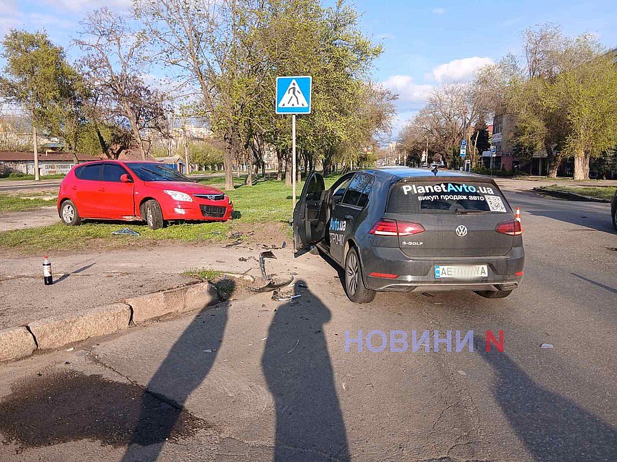 Увечері у п'ятницю, 10 квітня, на перетині вулиць Пограничної та Громадянської у Миколаєві зіткнулися автомобілі Volkswagen e-Golf та Hyundai.