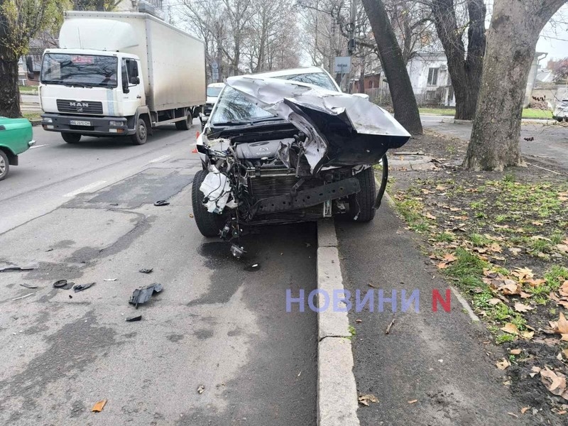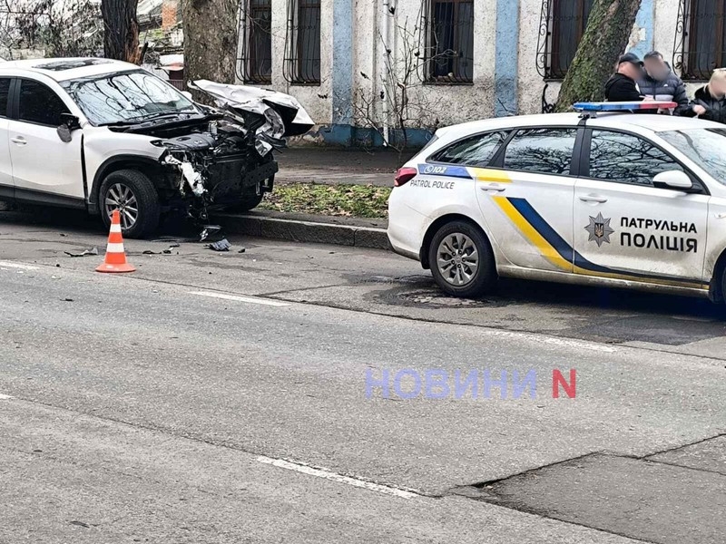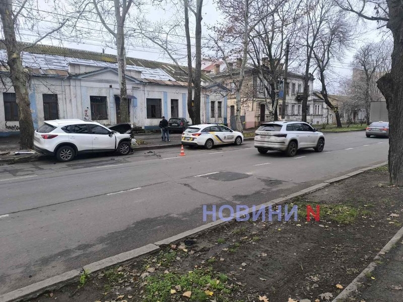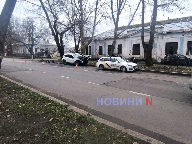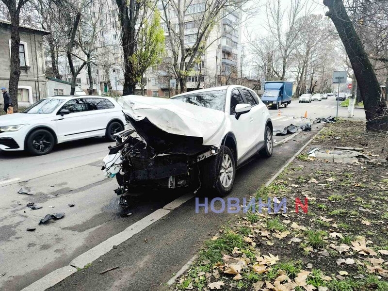 «Мазда» вилетіла на бордюр після зіткнення із фурою у центрі Миколаєва (фото)