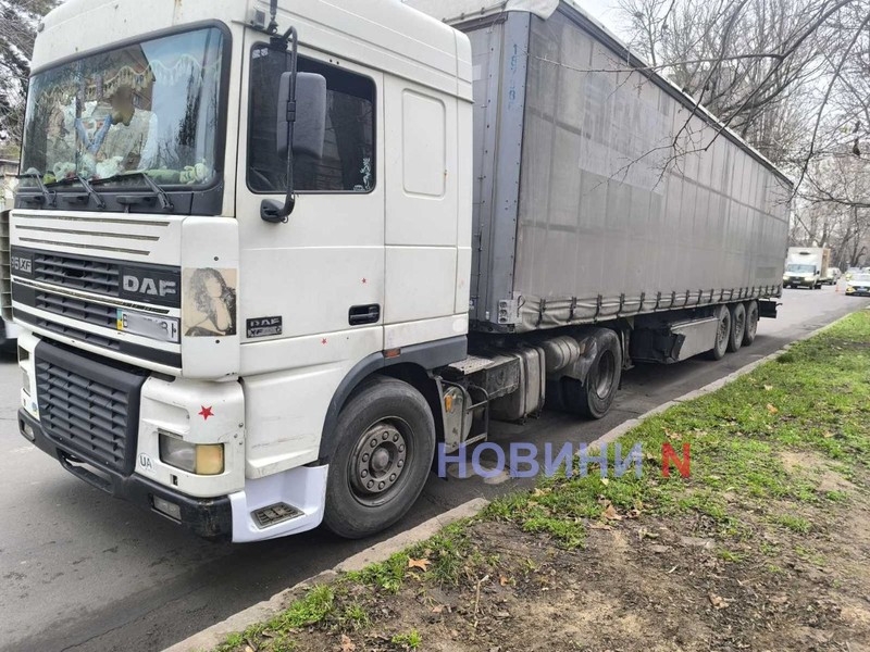 Вранці у вівторок, 9 грудня, на вул. Вадима Благовістного в Миколаєві зіткнулися сідельний тягач DAF та кросовер Mazda CX-60.