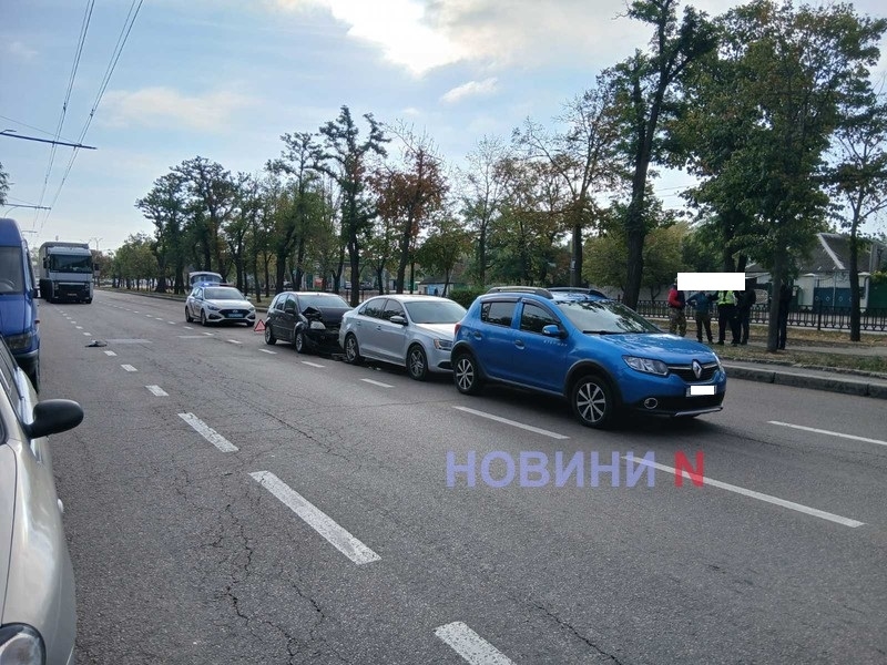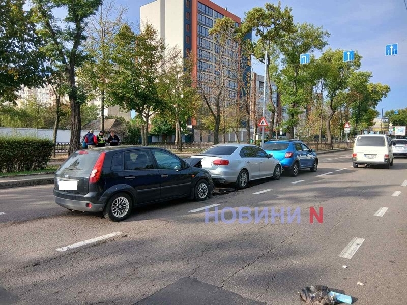 Вранці в п'ятницю, 3 жовтня, на Центральному проспекті в Миколаєві зіткнулися автомобілі Renault, Volkswagen і Ford.
