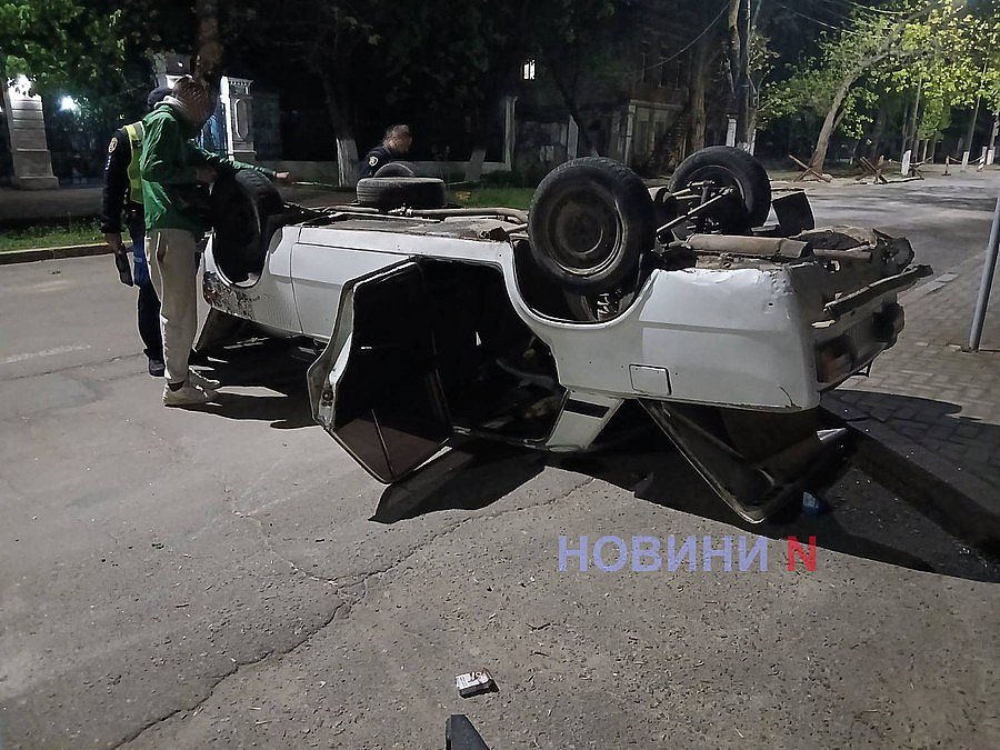 ДТП у центрі Миколаєва: після зіткнення з «Теслою» ВАЗ перекинувся та відлетів на 30 метрів