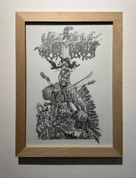 Робота належить родині художника. Це ілюстрація до поеми Ліни Костенко «Берестечко» (зображена на фото).