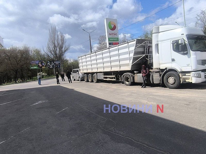 Вранці в середу, 8 квітня, на автозаправці Amic, розташованій на проспекті Героїв України в Миколаєві, зіткнулися сідельний тягач Renault із напівпричепом та мікроавтобус Volkswagen Multivan Bulli.