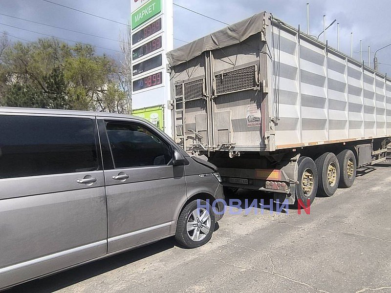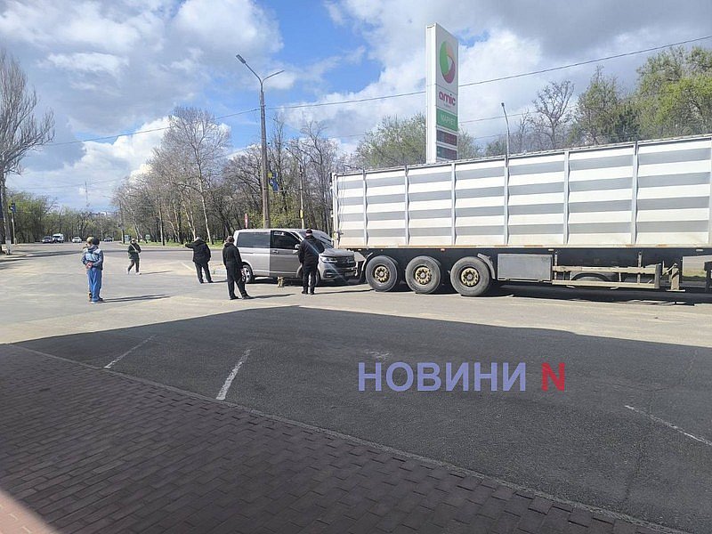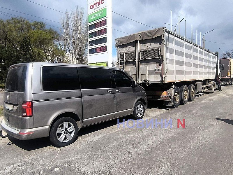 На заправці у Миколаєві фура, рухаючись заднім ходом, протаранила мікроавтобус (фото)