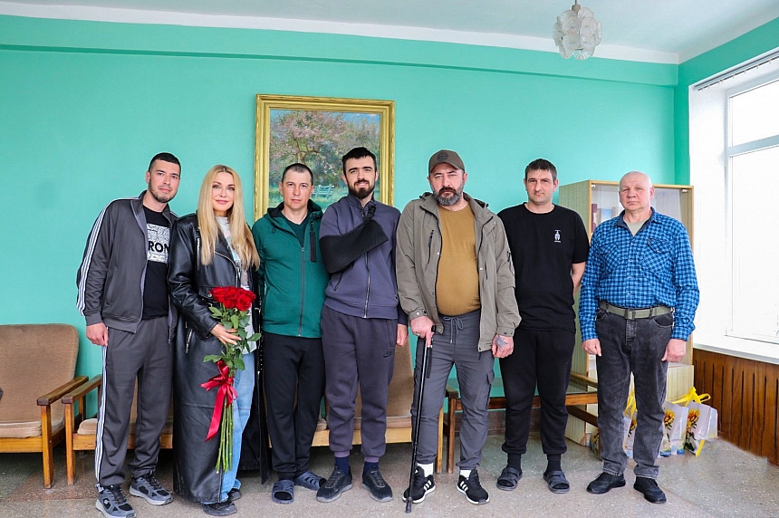 Народна артистка України, акторка та телеведуча Ольга Сумська відвідала миколаївських гвардійців, які проходять реабілітацію після бойових дій.