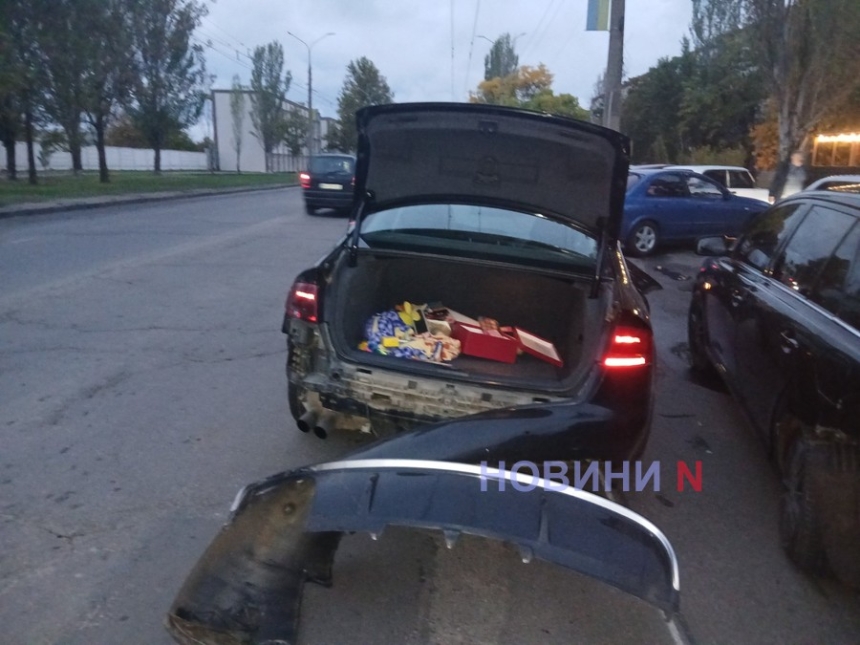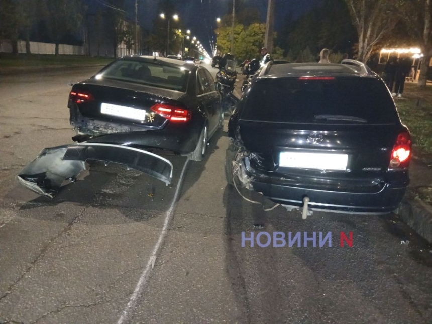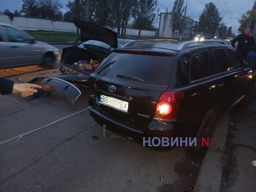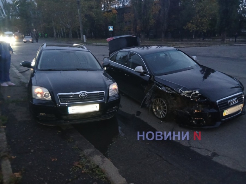 Увечері у четвер, 9 жовтня, на перетині пр. Миру та вул. Геннадія Матуляка (Генерала Свиридова) у Миколаєві зіткнулися автомобілі Toyota Avensis, Audi та Geely.