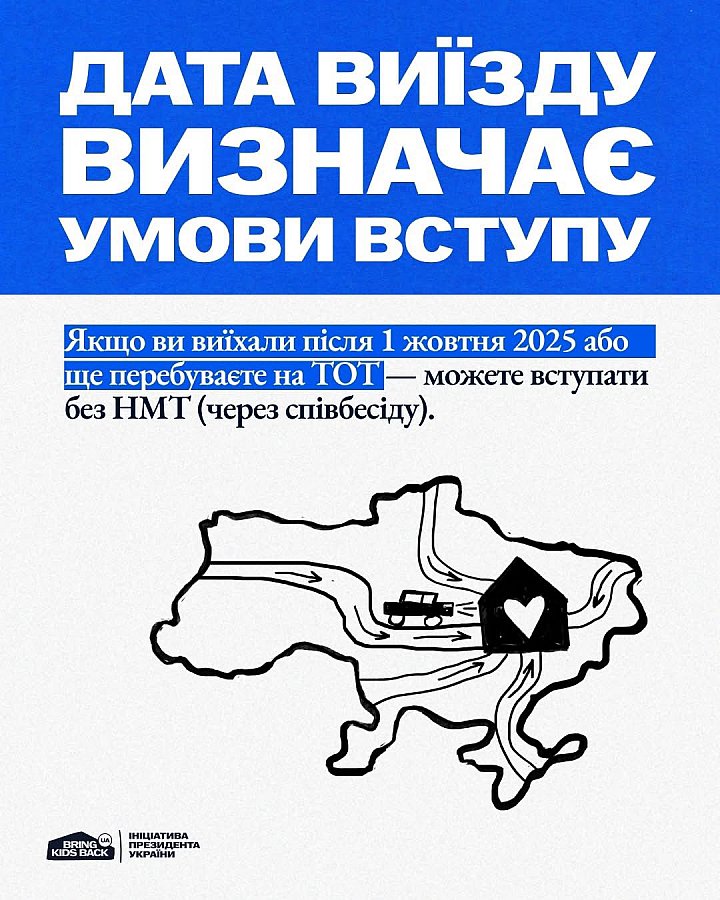 – якщо вступник перебуває на ТОТ або виїхав після 1 жовтня 2025 року – вступ можливий без НМТ, за результатами співбесіди;