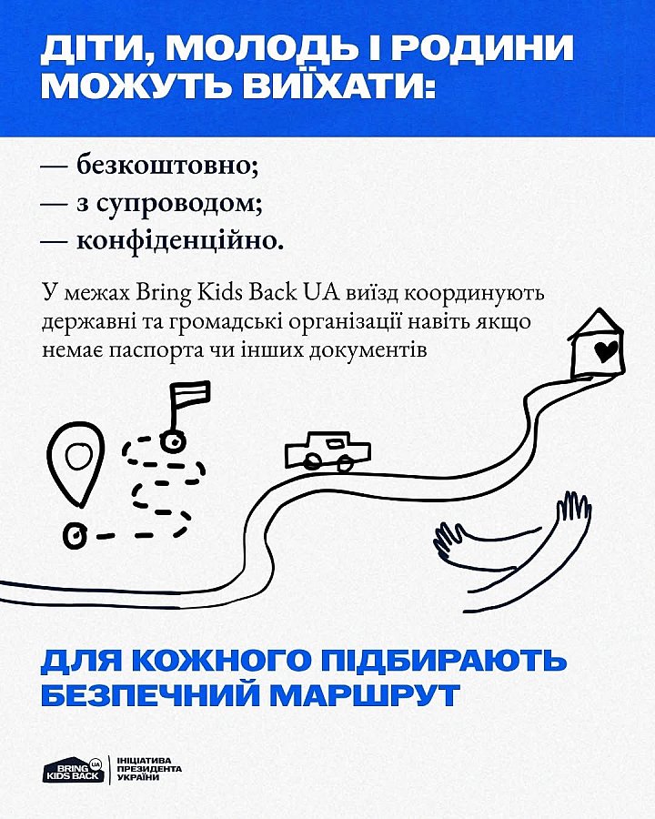 У межах ініціативи Bring Kids Back UA надається допомога з виїздом – безоплатно, конфіденційно та з повним супроводом.