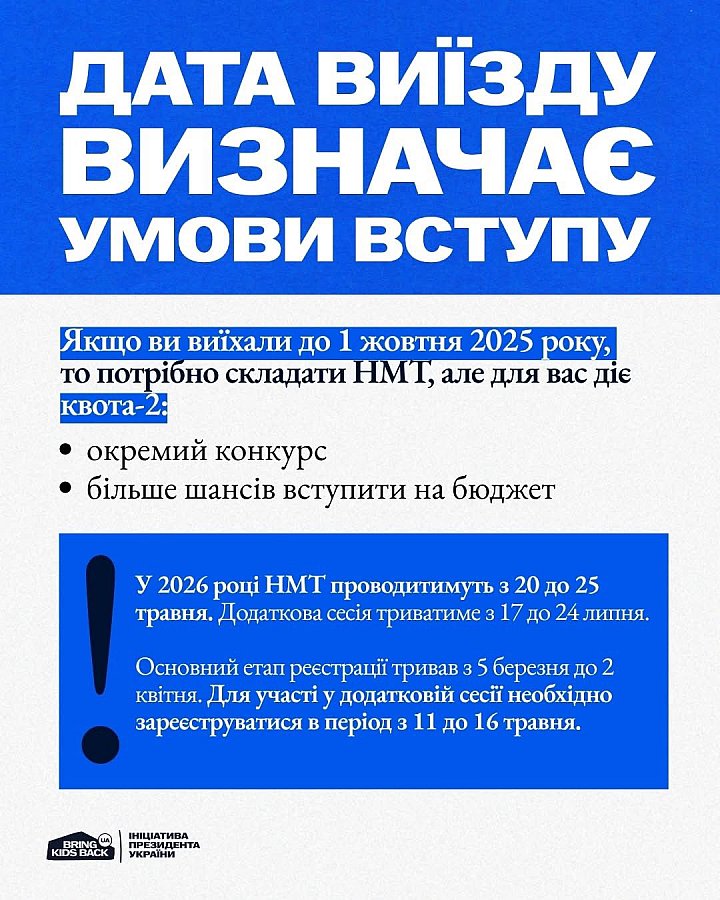 – якщо виїзд відбувся раніше, то вступ можливий за результатами НМТ із застосуванням квоти-2.