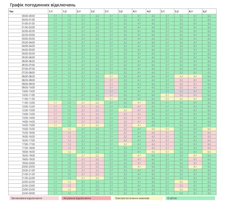 Погодинні графіки діятимуть з 08:00 до 23:00: