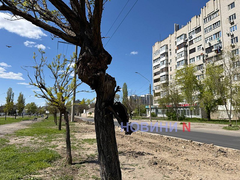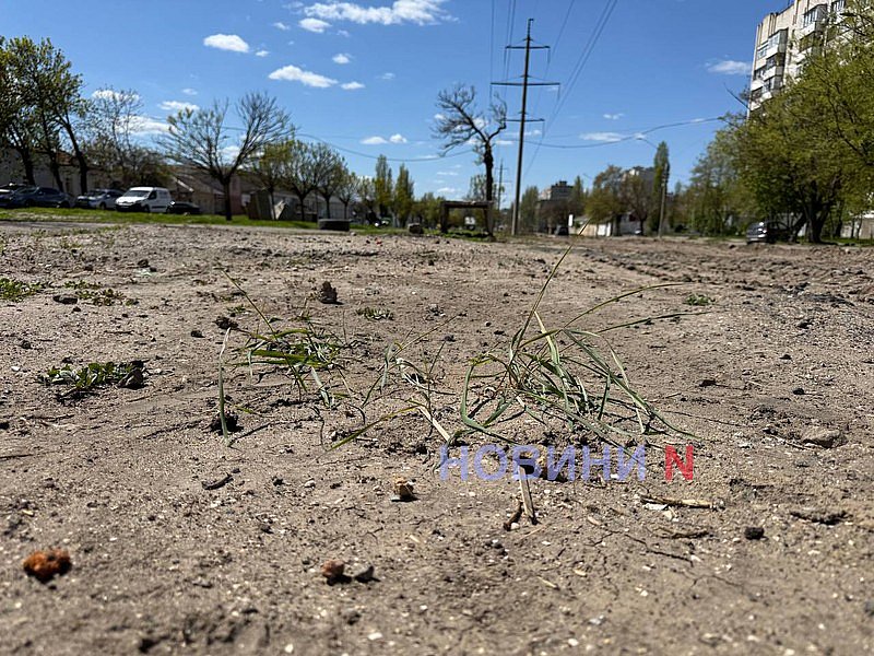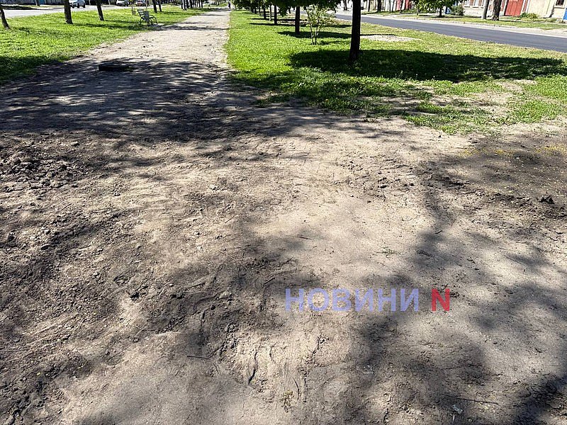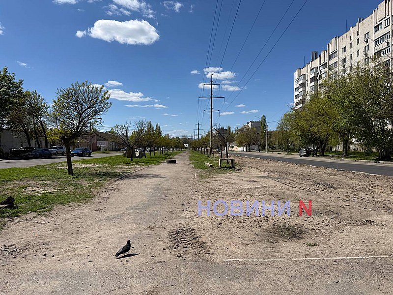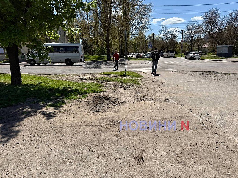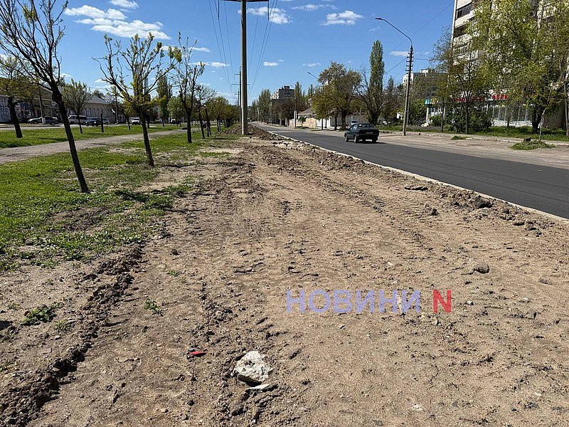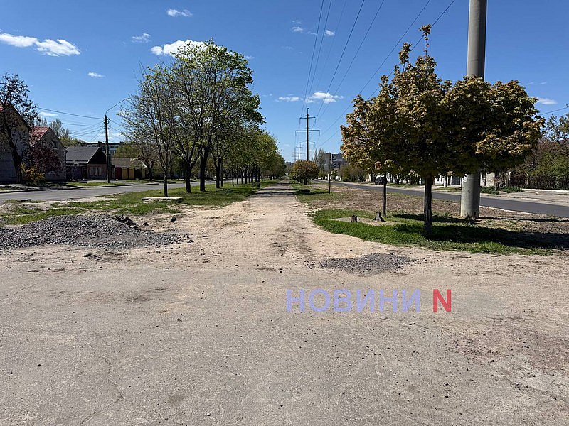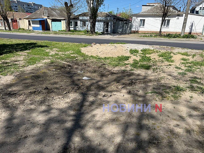 Після ремонту теплових мереж на проїжджій частині вулиці Прикордонної у Миколаєві бульварна частина, де розташована зелена зона та знаходився тротуар, перебуває у жахливому стані.