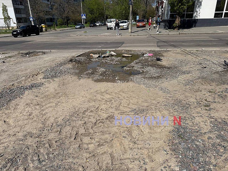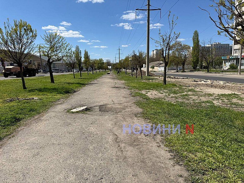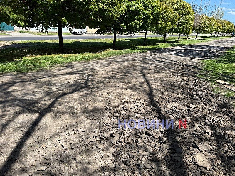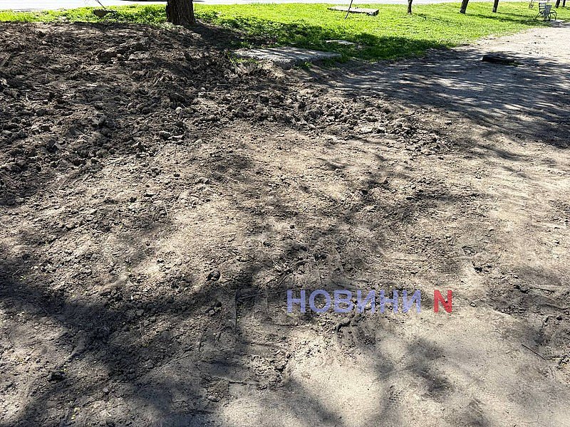 Купи землі, зруйновані тротуари та відкриті люки: як виглядає бульвар у Миколаєві після ремонту теплотрасії