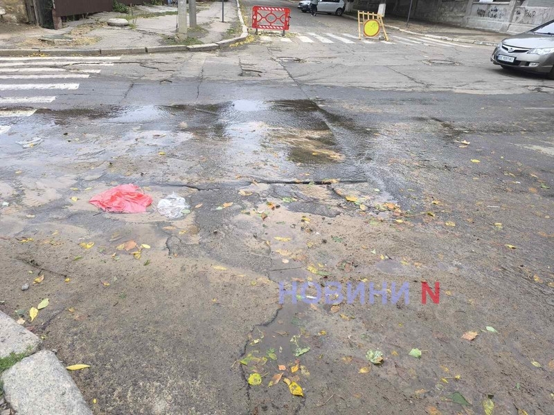 Мешканці Миколаєва повідомляють, що на перехресті вулиць 8-ма Поперечна та Гліба Бабича з-під асфальту постійно б'є вода.