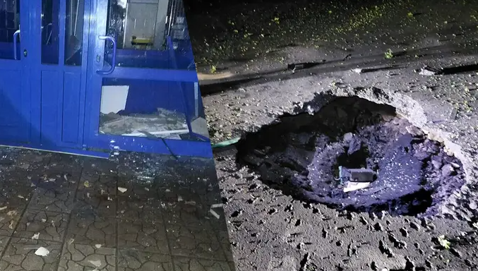 Він також показав кадри з наслідками удару по місту. На фото можна побачити, що через ворожу атаку повибивало шибки, а також утворилися вирви та гори будівельного сміття.