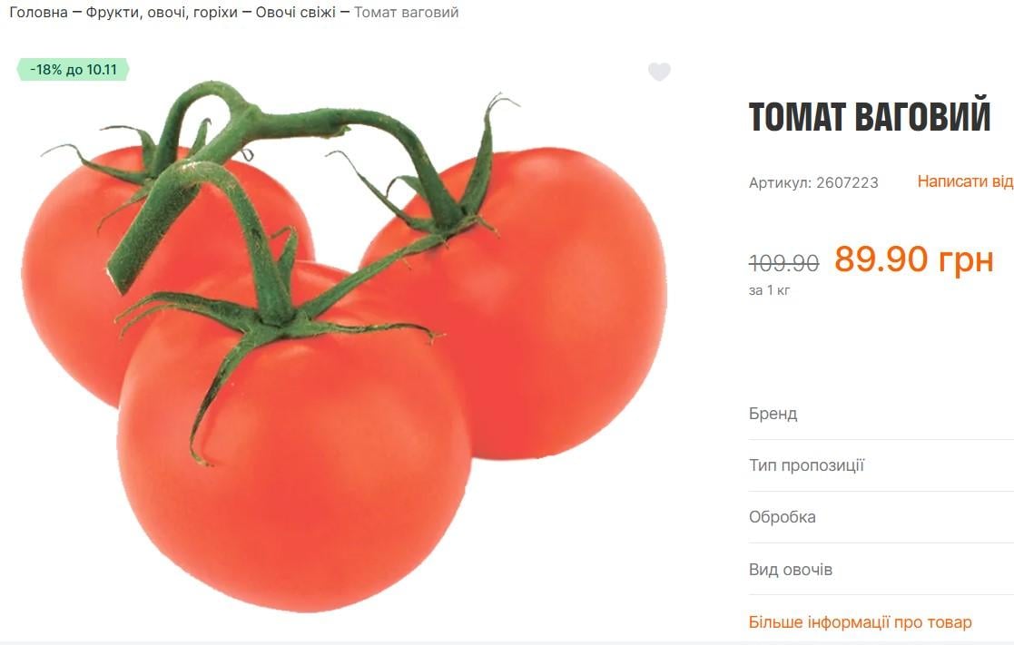 Томат ваговий в Varus зараз продають зі знижкою по 89,9 грн/кг.