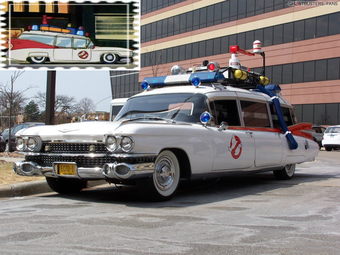 Лимузин скорой помощи Cadillac Miller-Meteor 1959 года был переделан Universal Studios в "Ecto-1" — автомобиль охотников за привидениями.