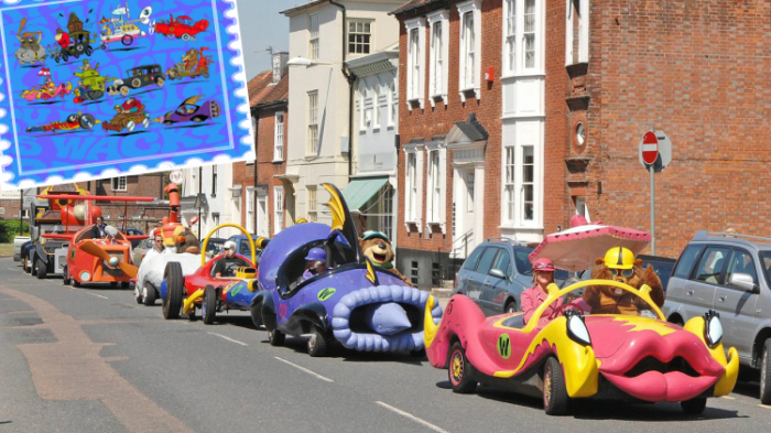 Многие помнят "Необычные гонки" - мультсериал студии Hanna-Barbera. 11 автомобилей из "Необычных гонок" проехали по английскому городу Чичестер в Западном Суссексе, в первый раз появившись на настоящих дорогах.