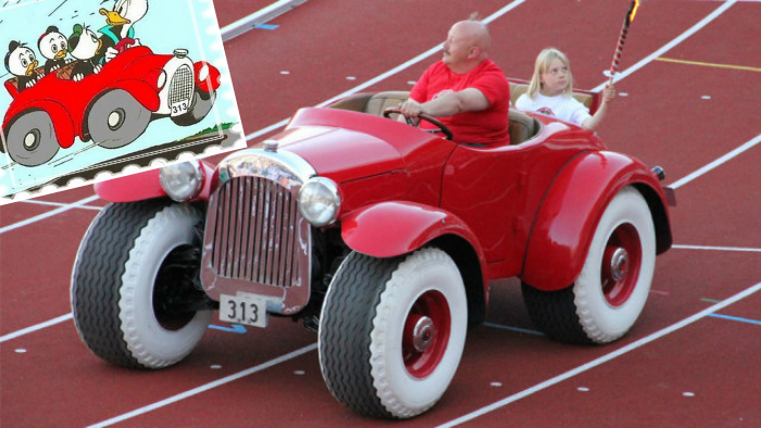 Автомобиль утенка Дональда Дака выехал из страниц комиксов мира на улицы городов, став реальным автомобилем. Он почти неотличим от своего прообраза, даже оснащен номерным знаком "313", что является днем рождения Дональда Дака - 13 марта.
