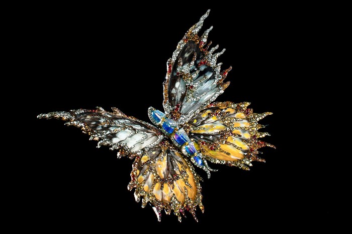 Уоллес Чан (Wallace Chan), пожалуй, один из самых необычных ювелиров современности, который создаёт бабочек, стрекоз, кузнечиков и мух из золота и драгоценных камней. Он придаёт им реальные размеры, отшлифовывает горный хрусталь настолько, что он становится похожим на крылышки насекомых. Вот, например, бабочка под названием Forever Dancing. Она выполнена из перламутровых листов, горного хрусталя, опалов и цветных бриллиантов.