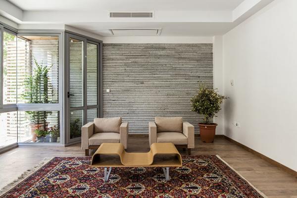 Внутренний дизайн резиденций также прост, как и внешний. Хочется назвать его «персидским минимализмом». Отдельные стены служат продолжением планочного фасада, мебель дорога, лаконична и современна, на паркетном полу лежат восточные ковры.