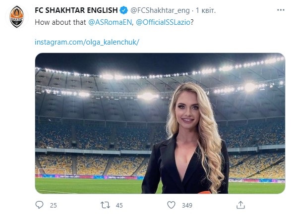 Отметим, в середине марта Каленчук приобрела популярность в Италии после освещения матча 1/8 финала Лиги Европы между Шахтером и Ромой на Стадио Олимпико.
