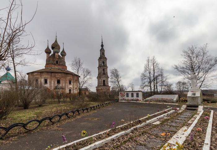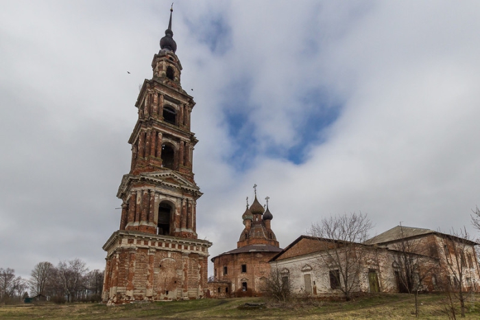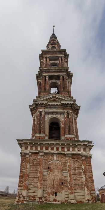 Рядом с Казанской церковью стоит высокая пятиярусная колокольня в классическом стиле с резными деталями, которая могла бы украсить любой город. Лестница на ней разрушена, но при большом желании наверх все же можно подняться.